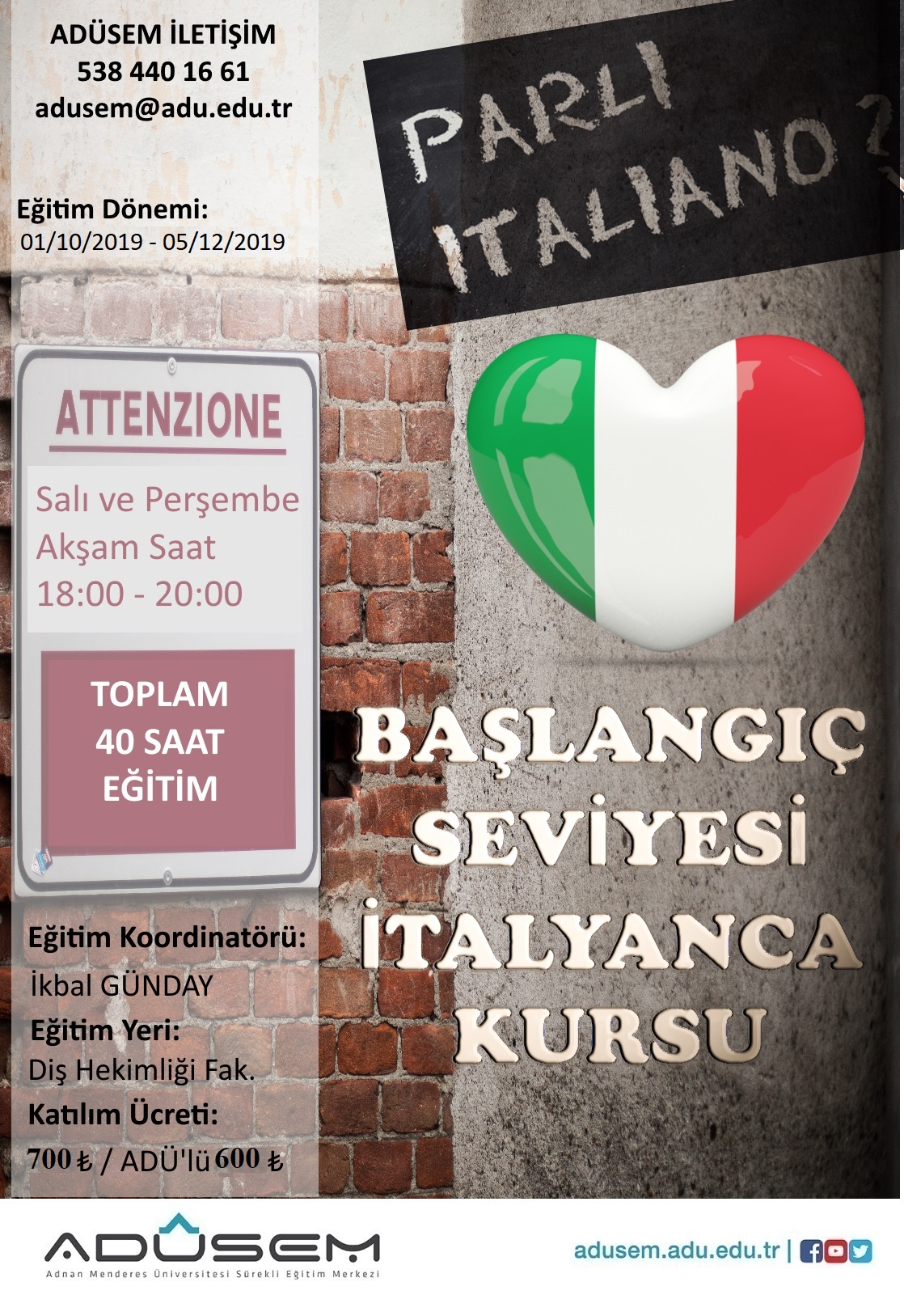 - İTALYANCA BASLANGIÇ DÜZEYİ 1 (A1) (01 Ekim 2019 -05 Aralık 2019)