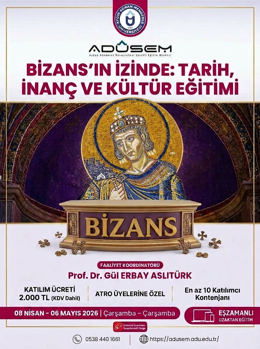 Aydın Turist Rehberleri (ATRO) üyelerine mesleki eğitim kapsamında Bizans tarihi, inancı, sembolleri, Avrupa ile ilişkileri ve etki alanlarına değinilerek zamanının ve sınırlarının ötesindeki Bizans kültürü tanıtılacaktır.