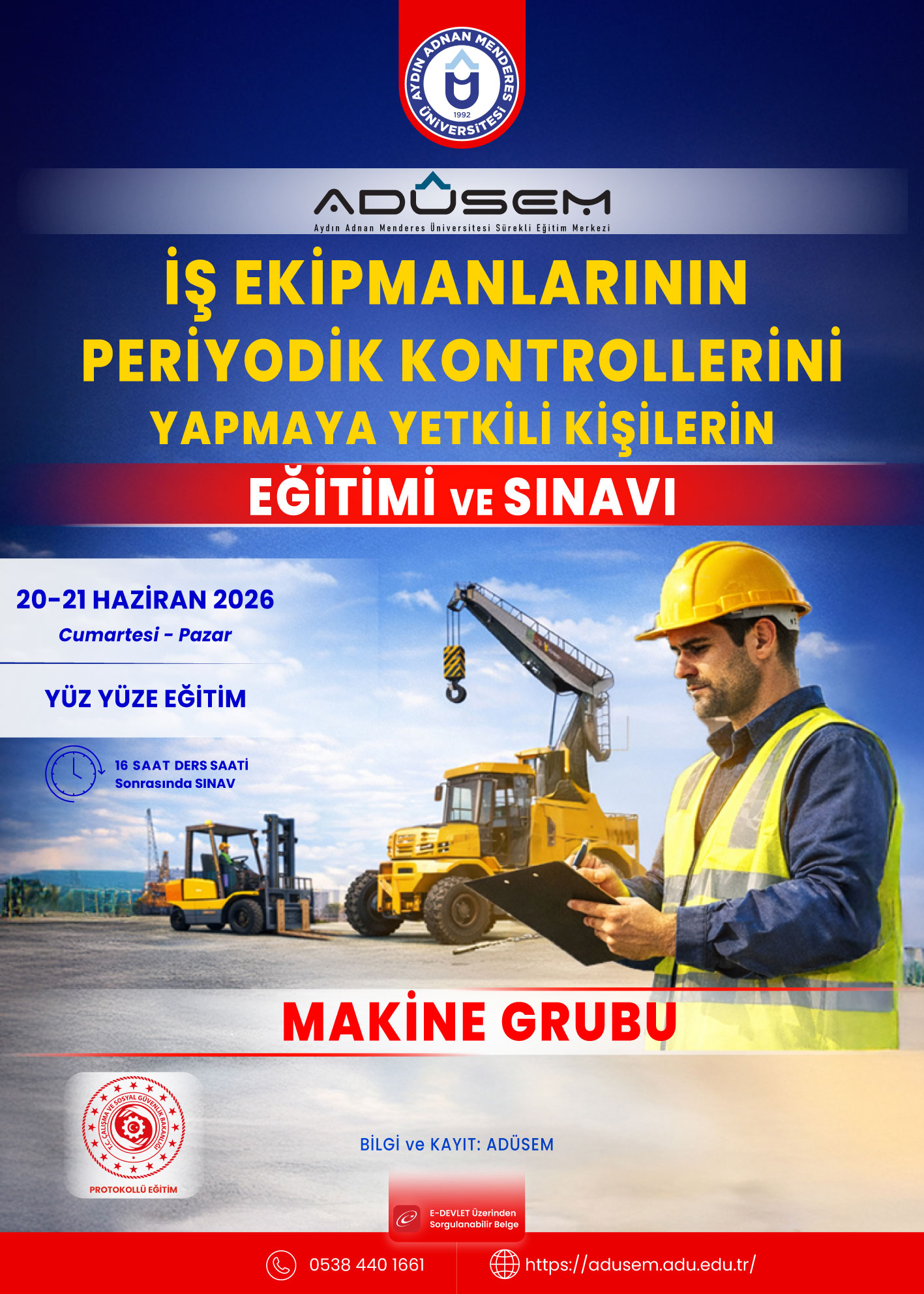 İş Ekipmanlarının Periyodik Kontrollerini Yapmaya Yetkili Kişilerin Eğitimi ve Sınavı (MAKİNE)