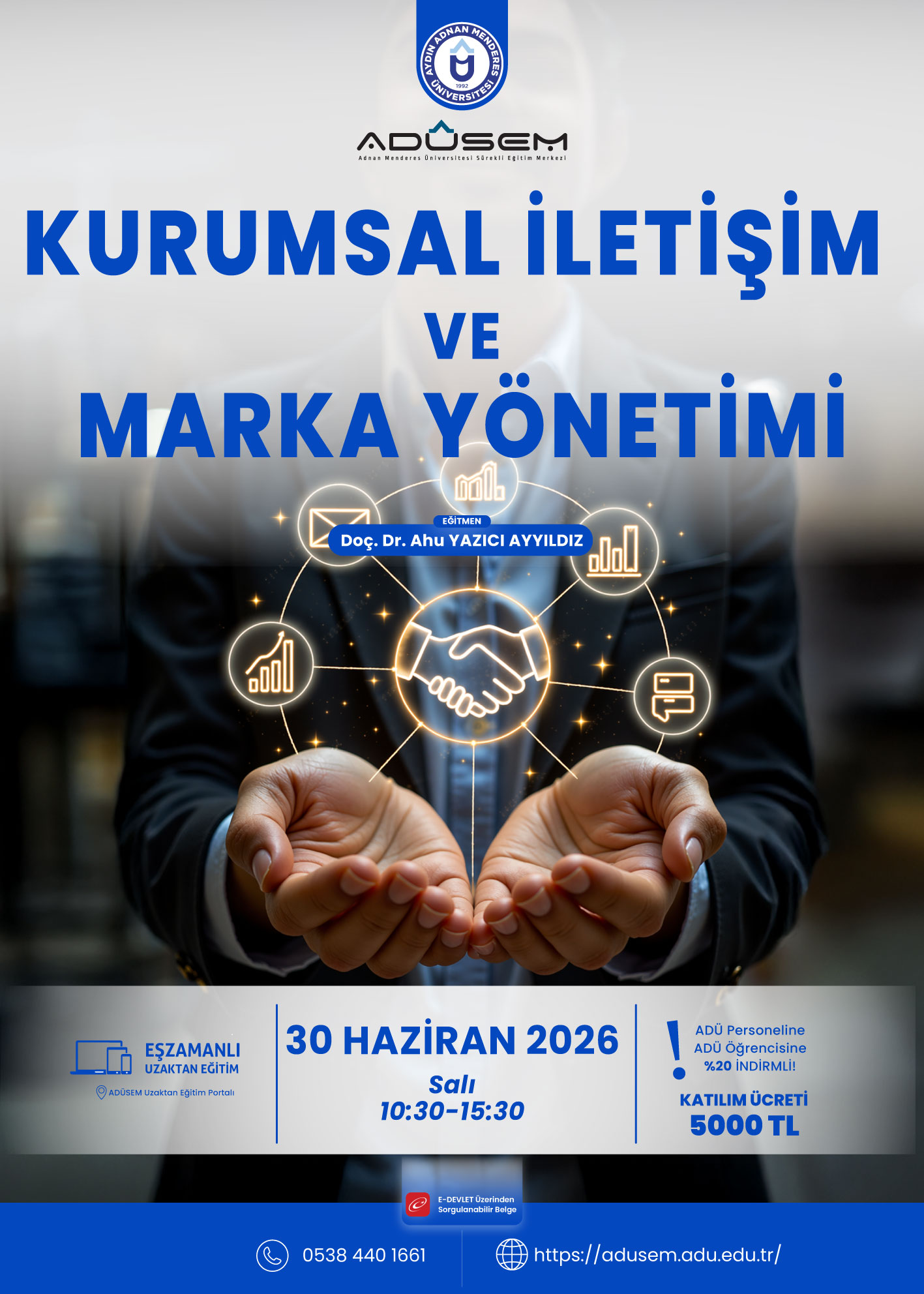 | 13.30-15.30 | Kurumsal İletişim ve Marka Uyumu, Deneyim Odaklı Marka Yönetimi ve Vaka Analizi, Değerlendirme, Soru-Cevap ve Kapanış |