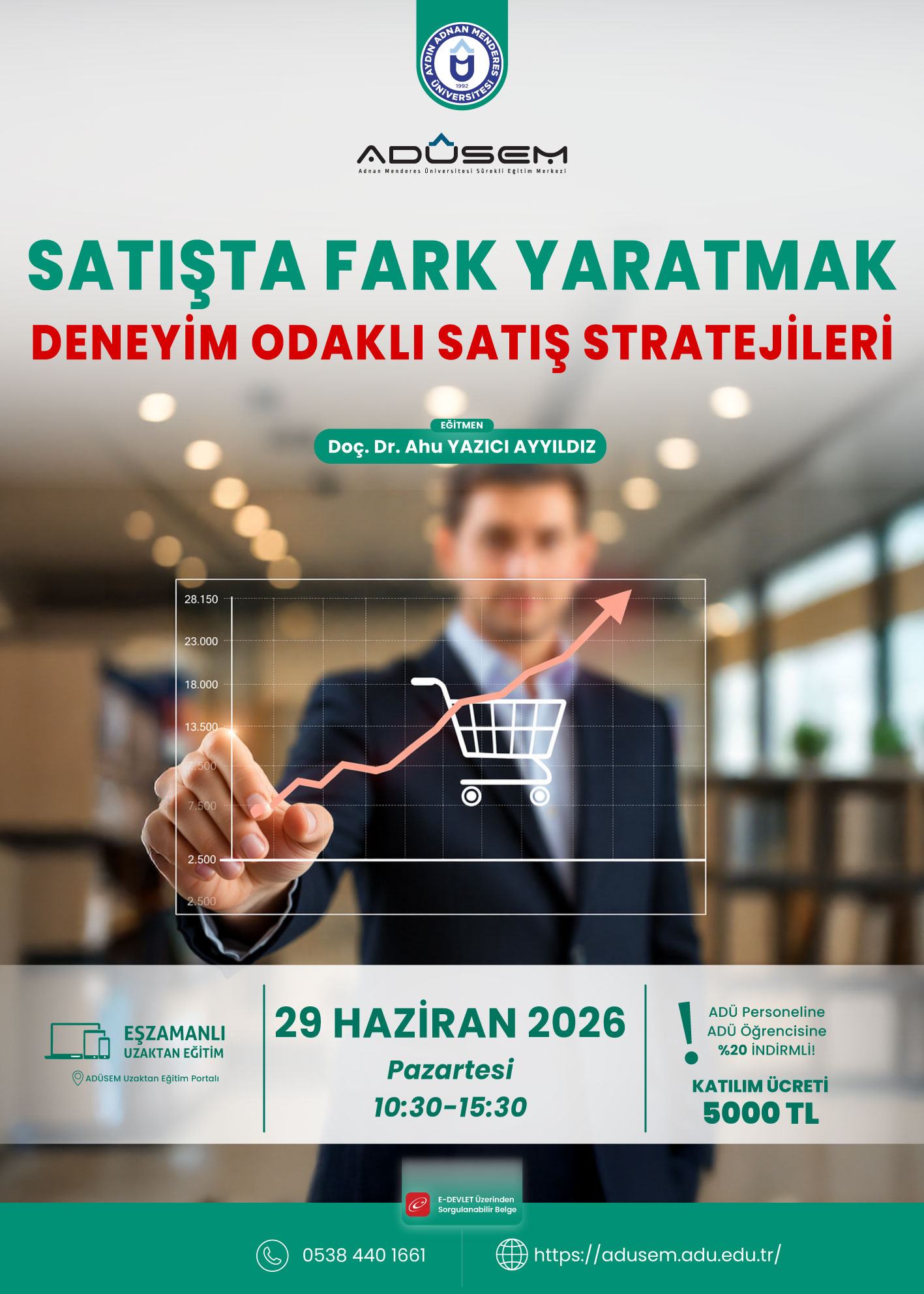 Faaliyet kapsamında katılımcılara, müşteri davranışlarını anlama, müşteri yolculuğunu analiz etme, deneyim tasarımı, etkili iletişim ve ikna teknikleri, değer odaklı satış yaklaşımı ve müşteri sadakati oluşturma konularında bilgi ve beceri kazandırılması amaçlanmaktadır. Ayrıca katılımcıların, satış süreçlerini deneyimsel pazarlama ile entegre ederek rekabet avantajı sağlayan stratejiler geliştirebilmeleri hedeflenmektedir.